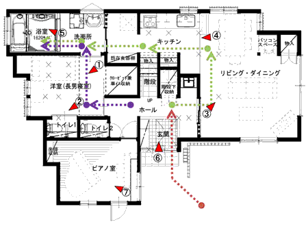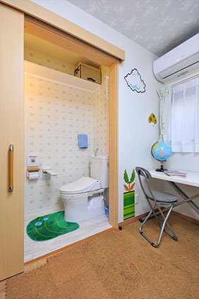 (長男の部屋を1階に。段差をなくし、水まわりを広く。)