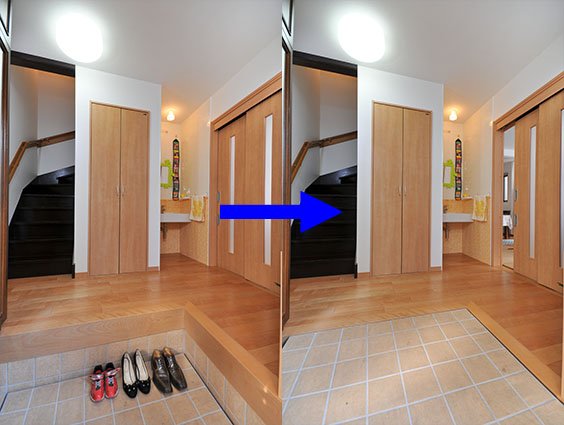 車椅子使用の長男が室内で自由に行き来でき、自立した生活ができるバリアフリー化。