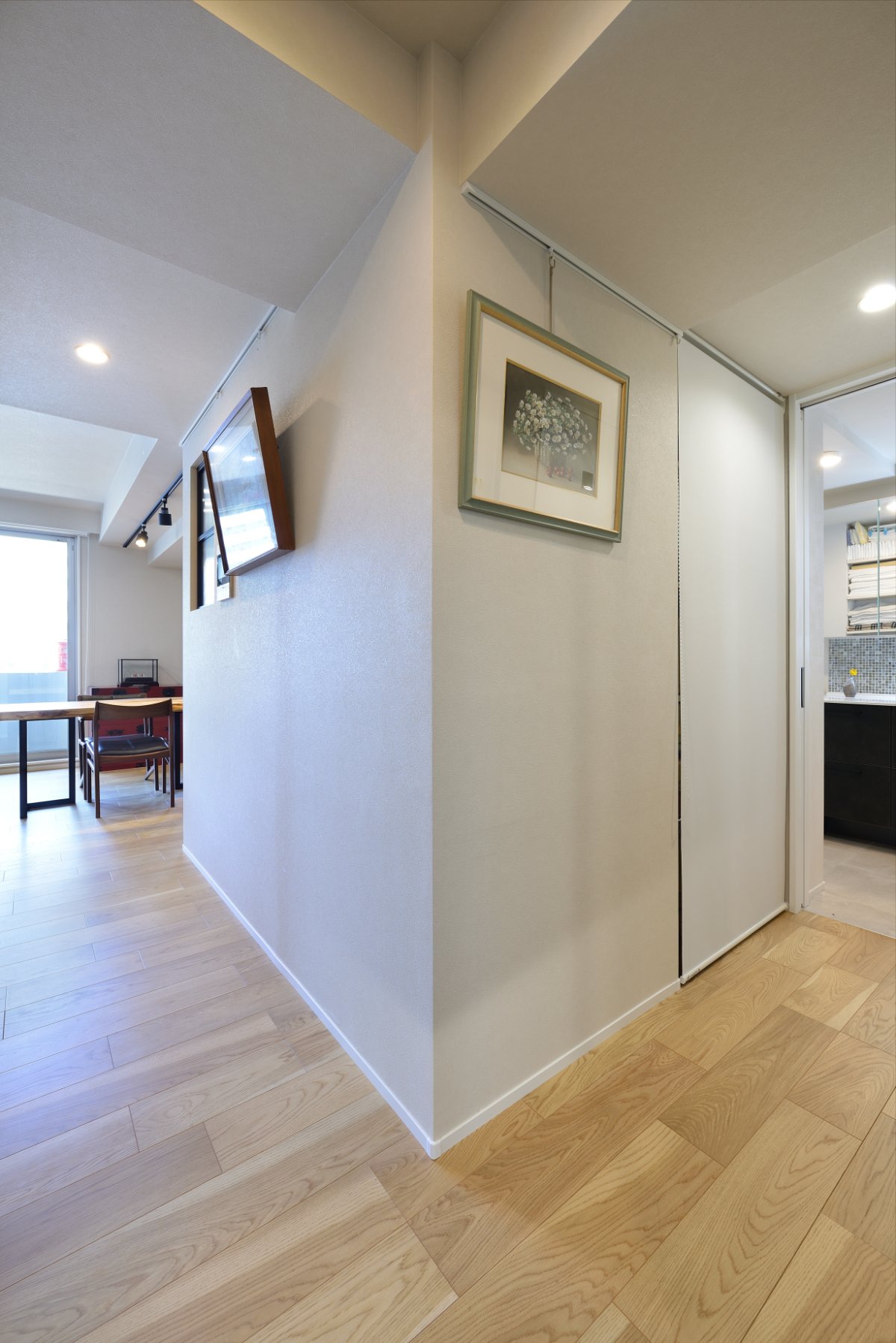 既存のL字型の廊下を活用して、回遊できる動線プランをご提案
