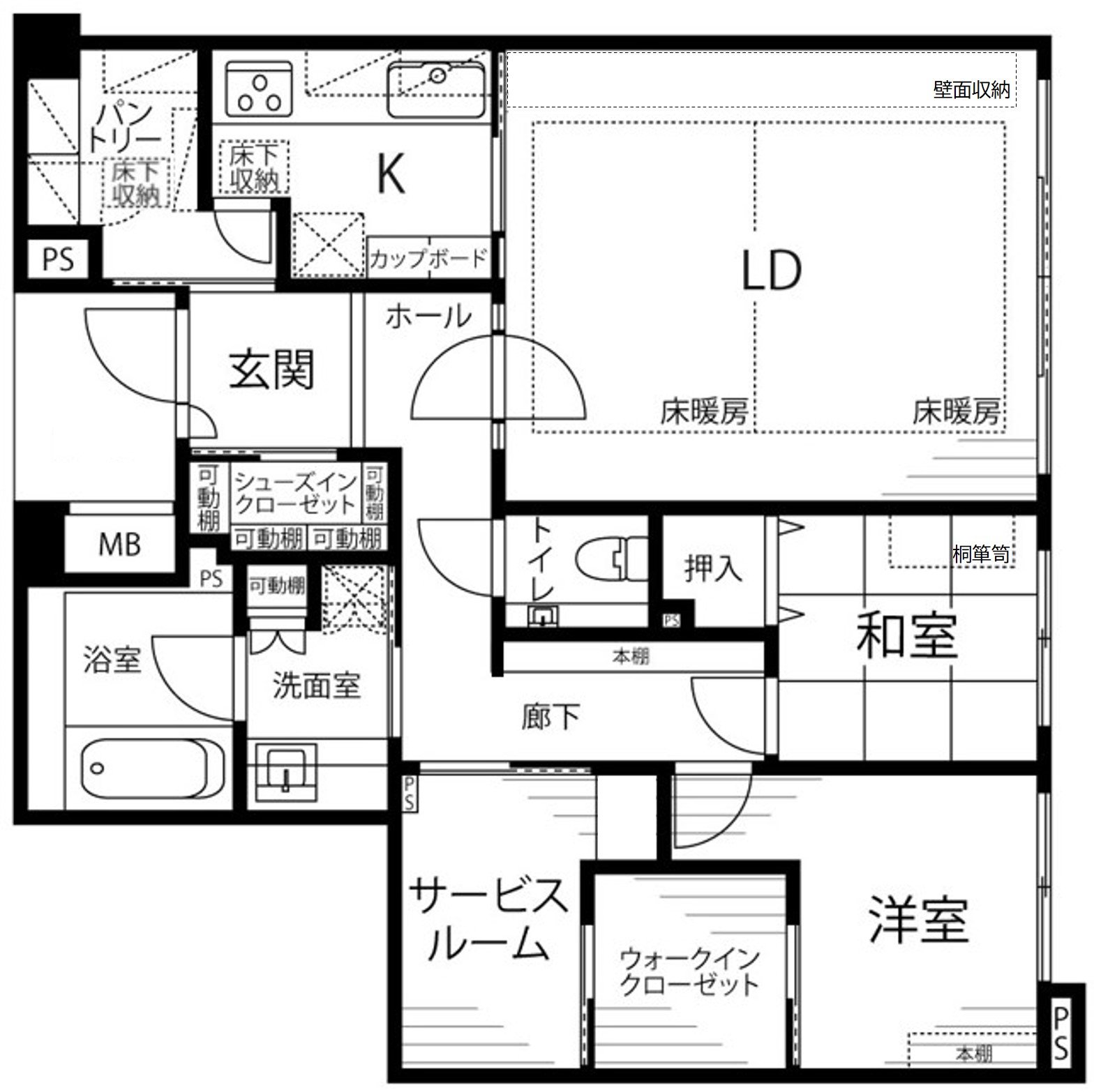 ご主人さまの居室(洋室)と奥さまの居室(サービスルーム)をWICで繋ぎ、回遊動線のある空間をご提案