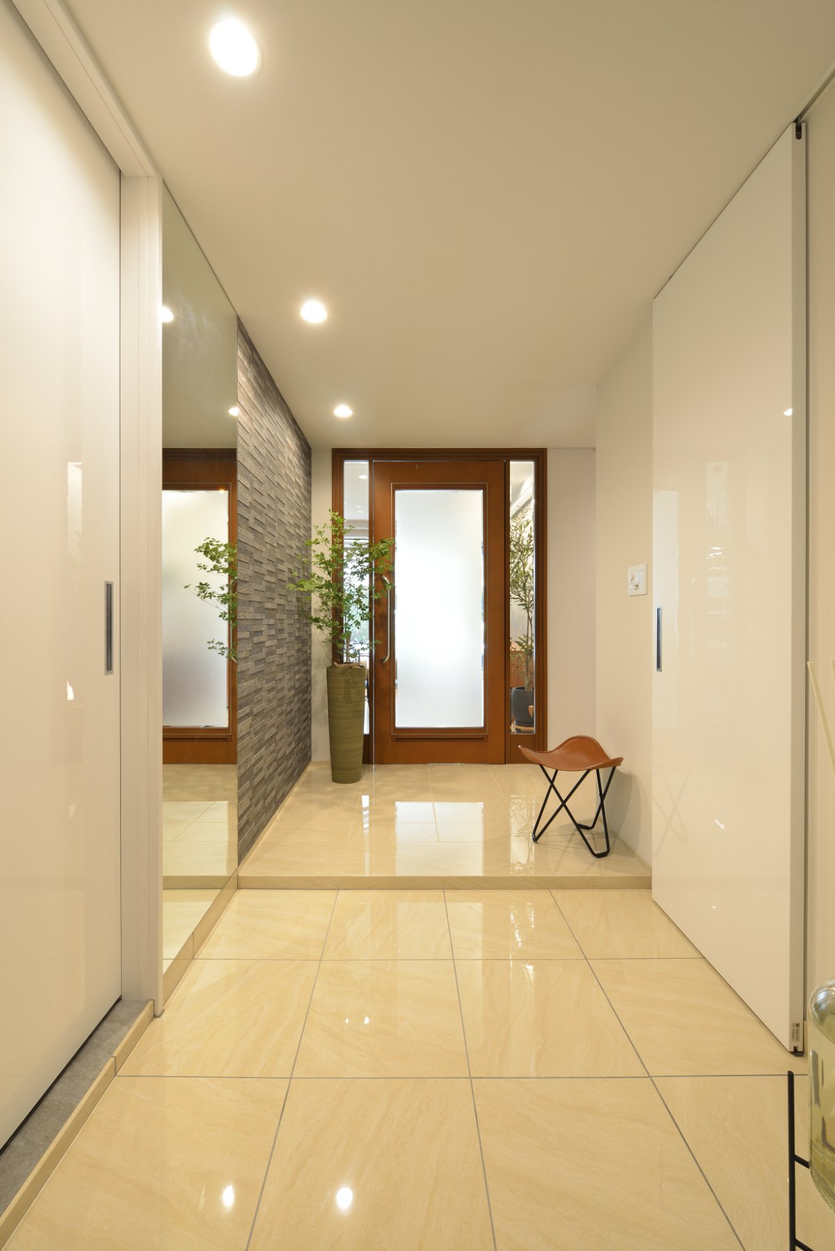 玄関ホールに約100足の靴を収納するスペースが欲しい