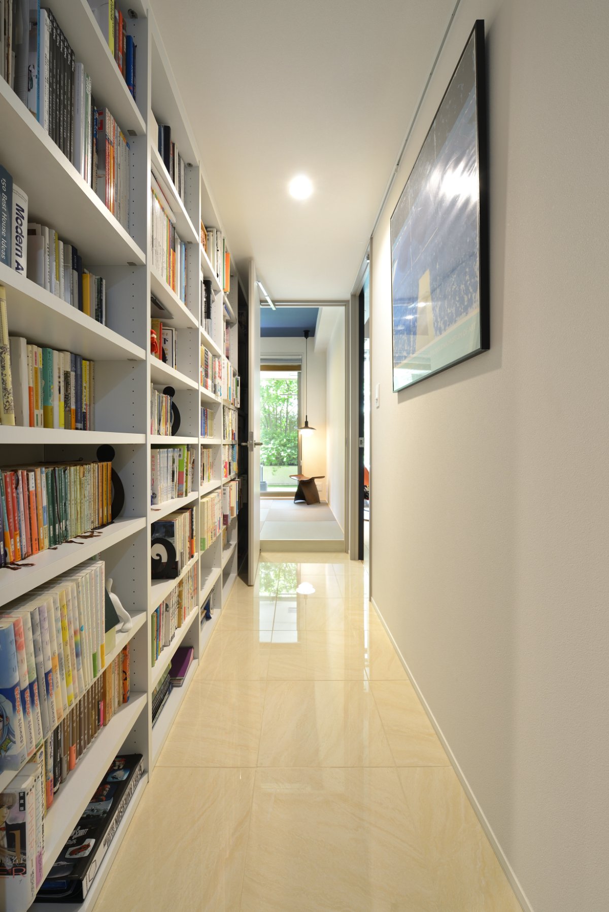 洋室を和室に、また押入れのサイズ変更に合わせて廊下に新設する壁面書棚の棚を増設し、より多くの蔵書を収納出来るようご提案
