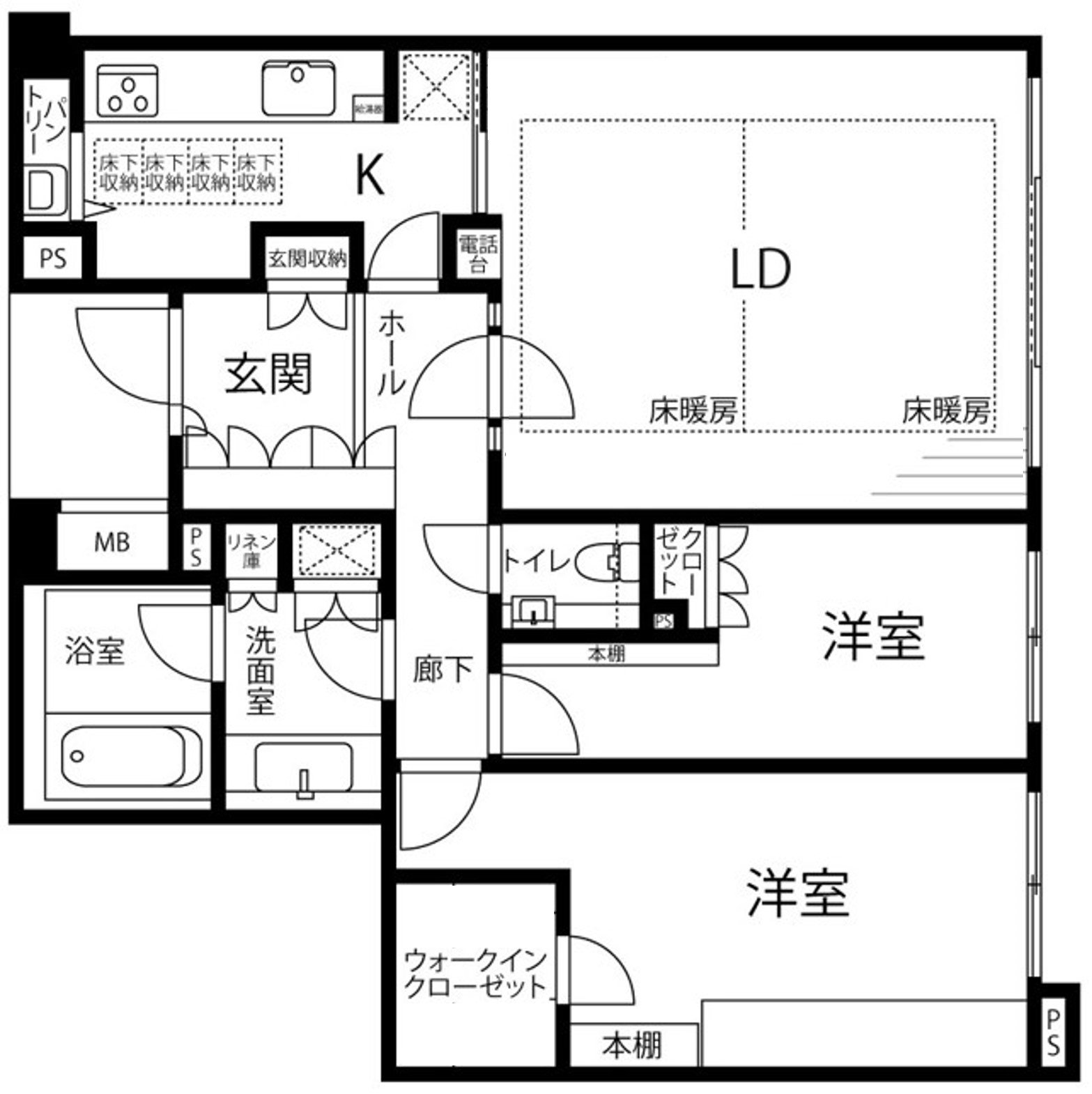 間取り変更に伴い、洋室内にあった書棚を廊下に面した壁面書棚に変更することをご提案