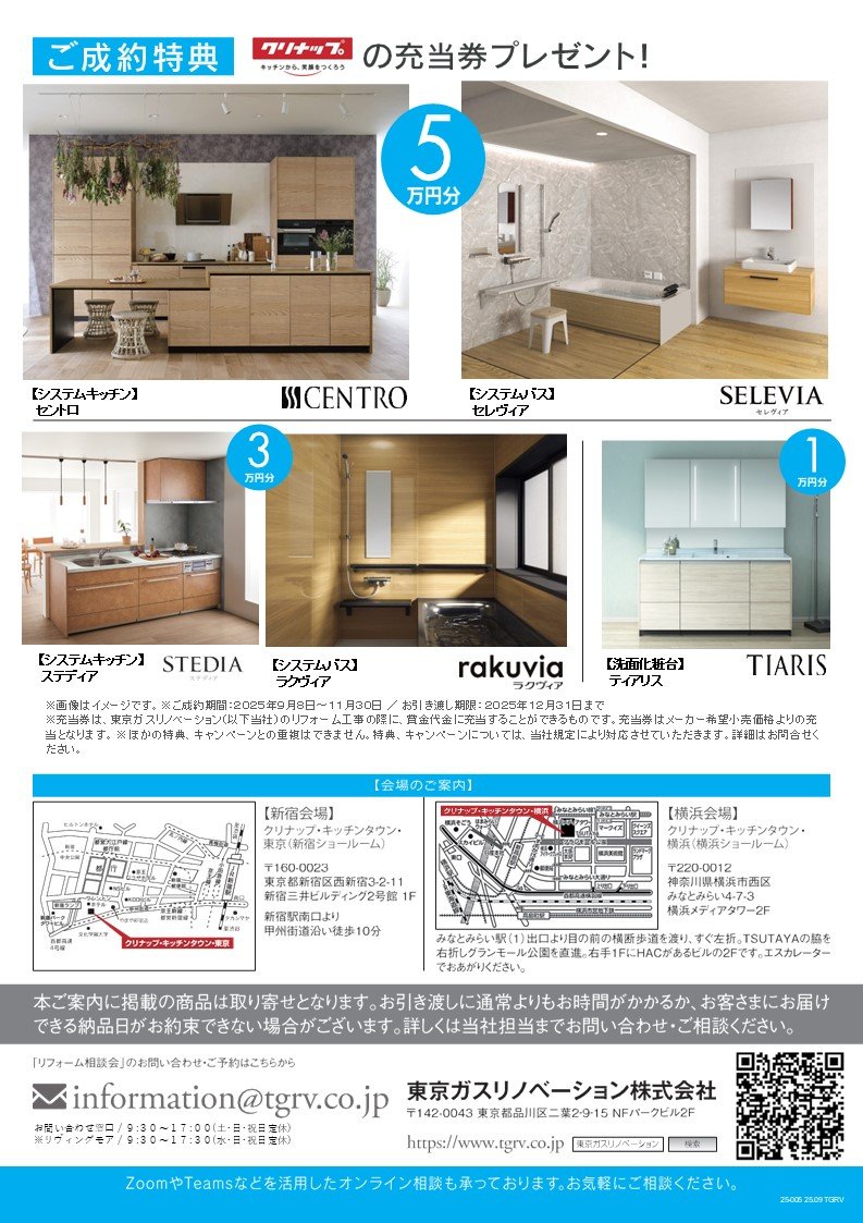 クリナップ新宿・横浜ショールーム リフォーム相談会
