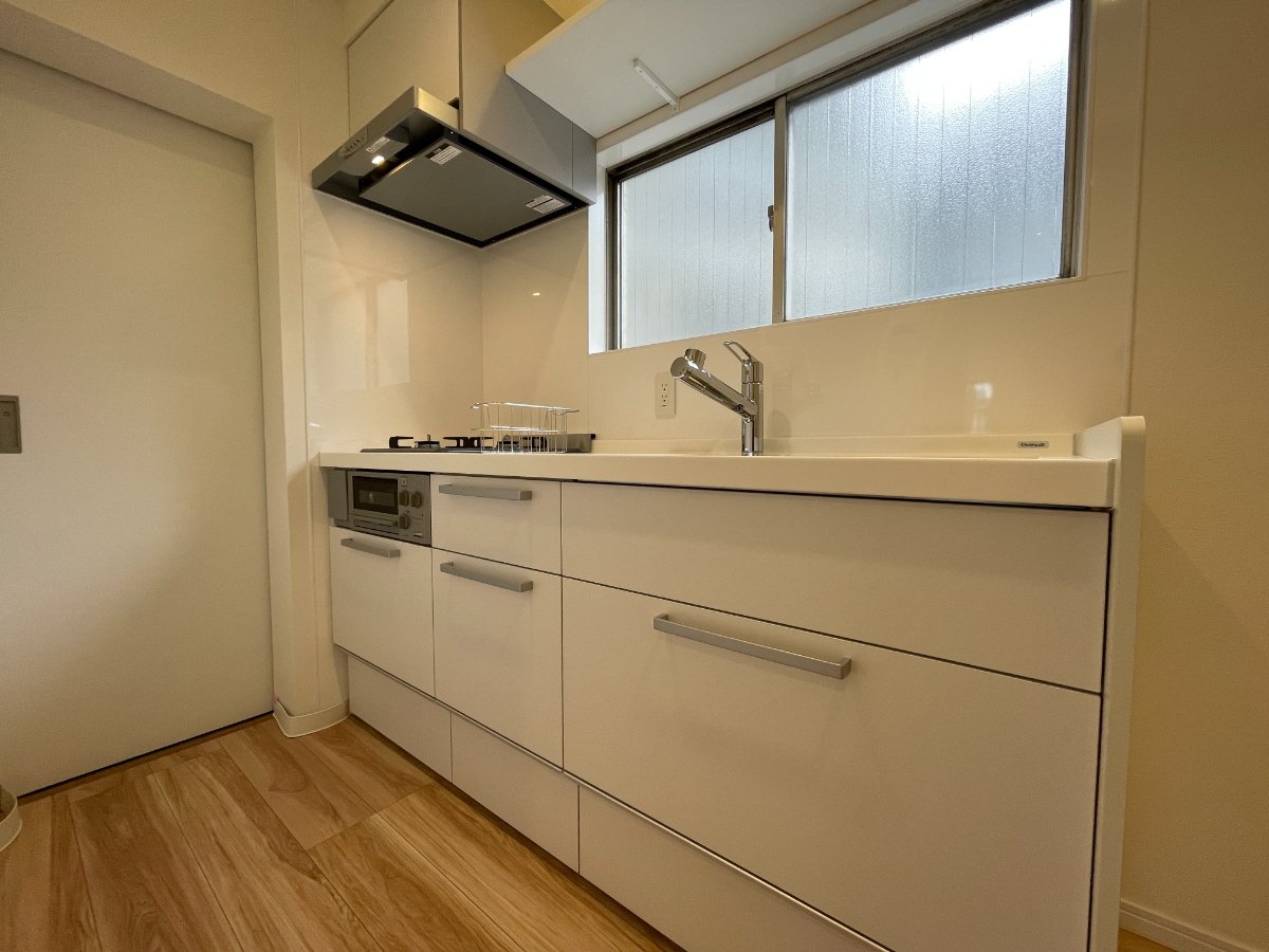 【キッチン】システムキッチン(W180cm)、浄水器一体型水栓、三ツ口コンロ