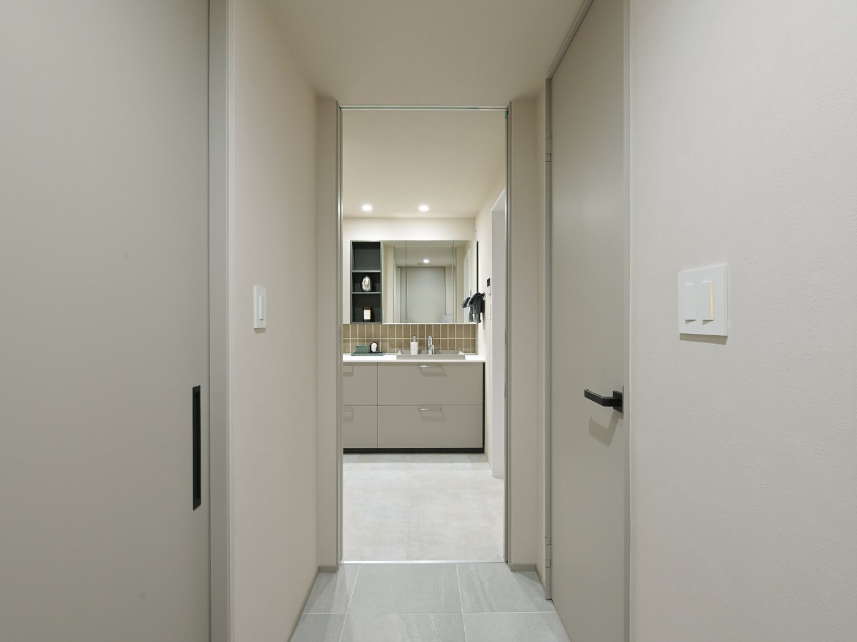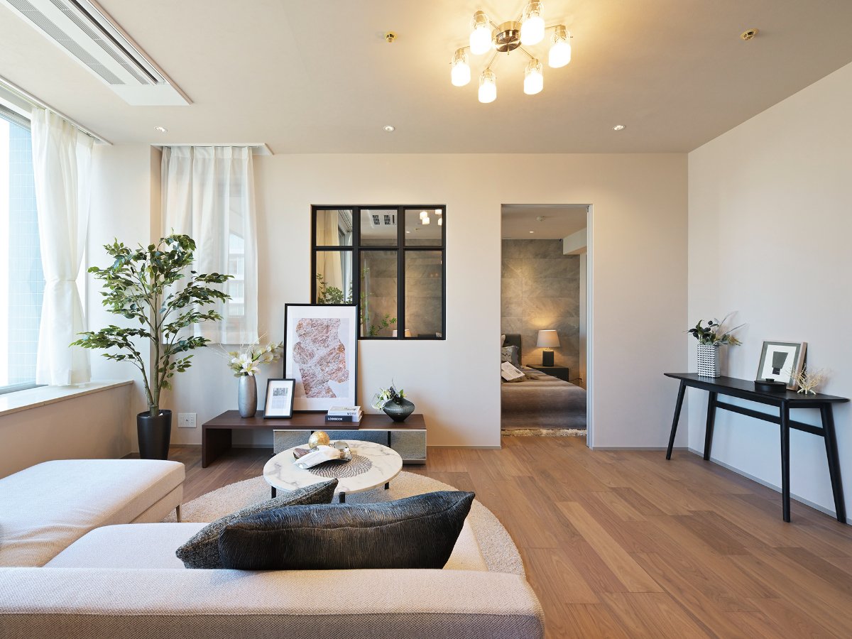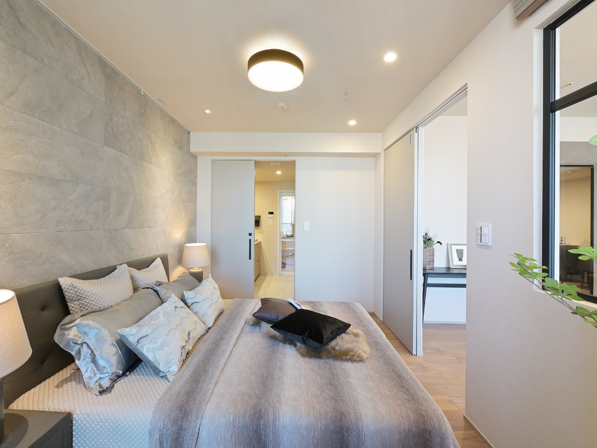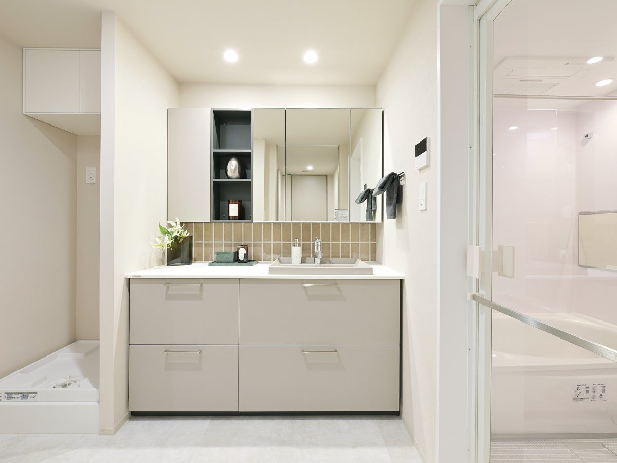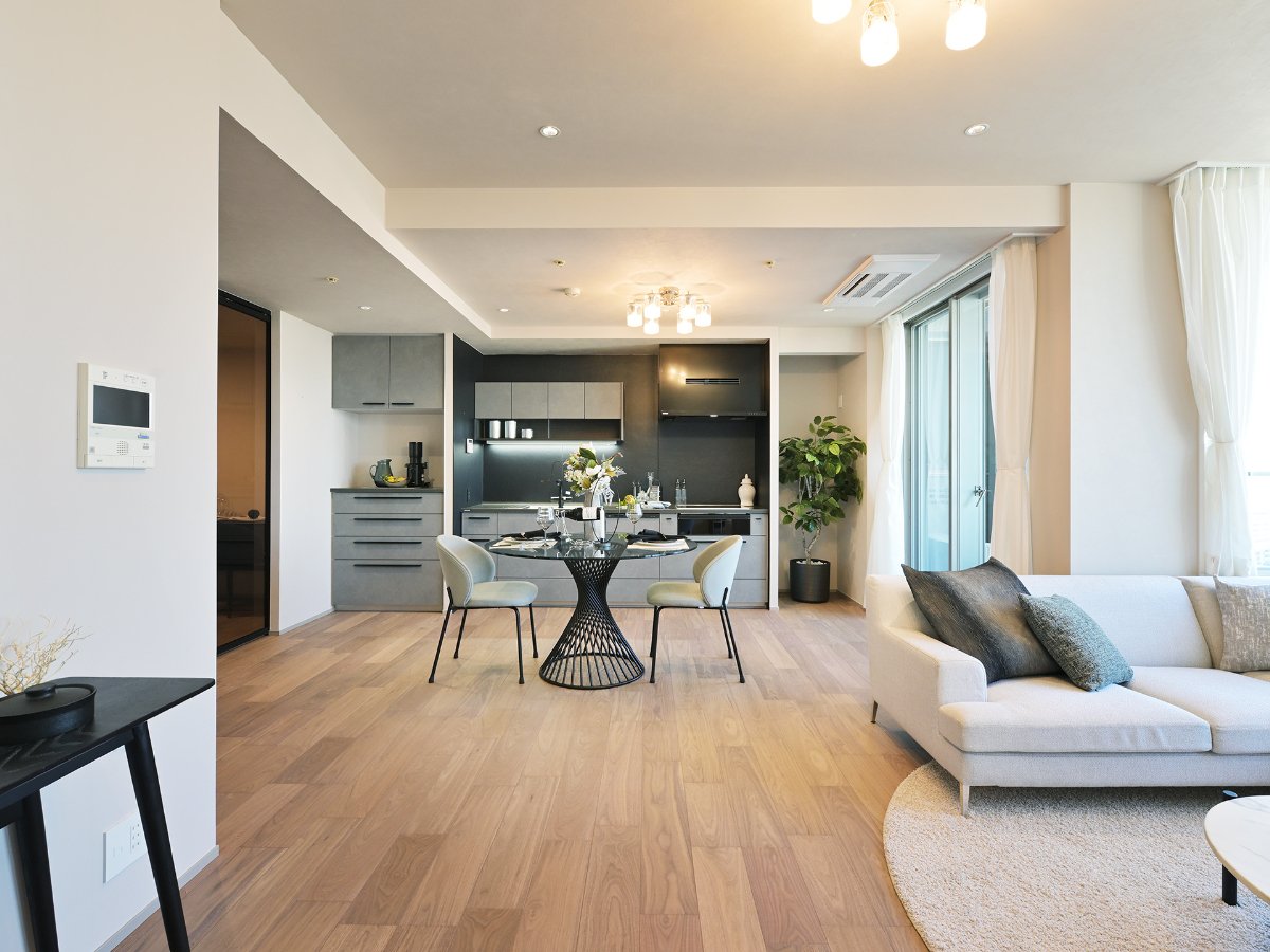床タイル/壁エコカラット(洋室)/ピクチャーレール(洋室)/床暖房/給湯器/カーテンレール(LD、洋室)/天井埋め込みエアコン(LD、洋室)/専有部給水給湯管etc