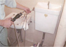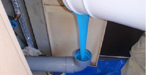 建物の壁、床などを解体することなく既存給水管の汚れや赤サビのコブを除去し内部にエポキシ樹脂塗料を均一にライニングします。