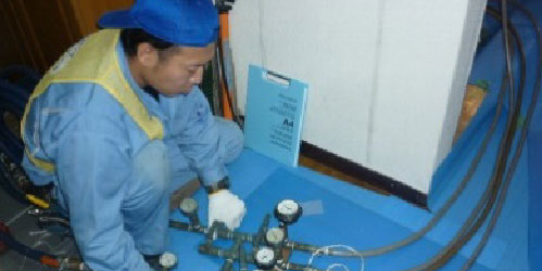 マルリョウでは職人の育成を重視し高品質を確保します。塗装面は大きな面積を占める大切な工事です。目視確認及び塗布量や乾燥時間の厳重な管理を行うことで頑丈な塗装を施し、塗布工程ごとの検査の実施により品質を確保します。